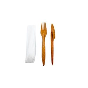 Zestaw widelec drewniany + nóż drewniany + serwetka 350sztuk
